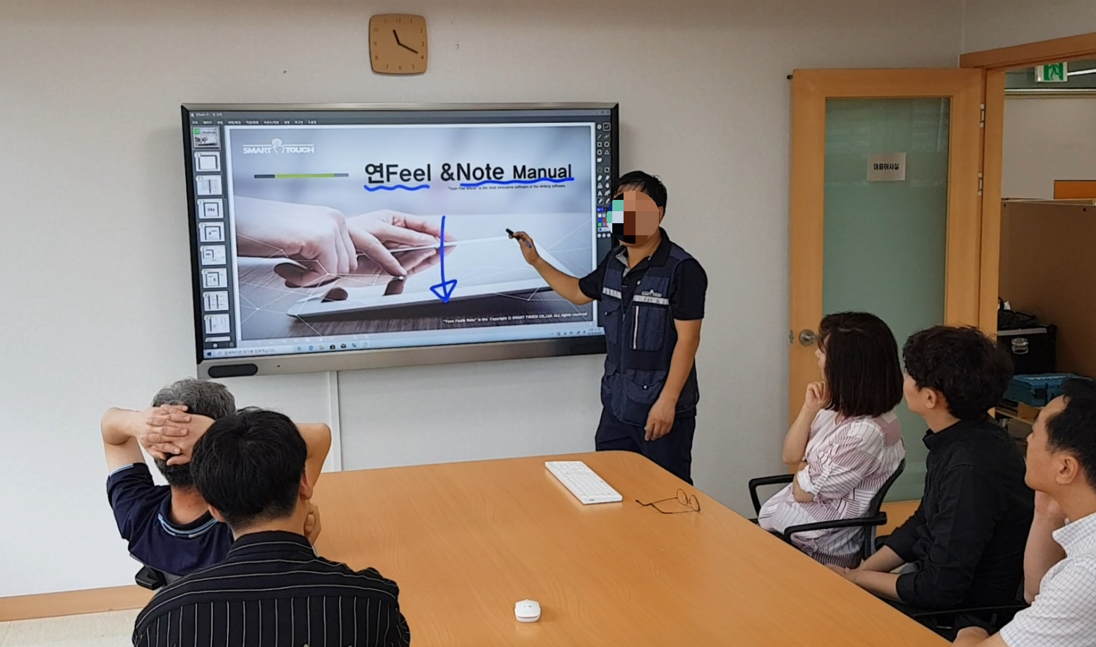 실제로 문서를 열어두고 연필 프로그램이 회의실에 어떻게 많이 활용되는지 설명해드렸는데요.