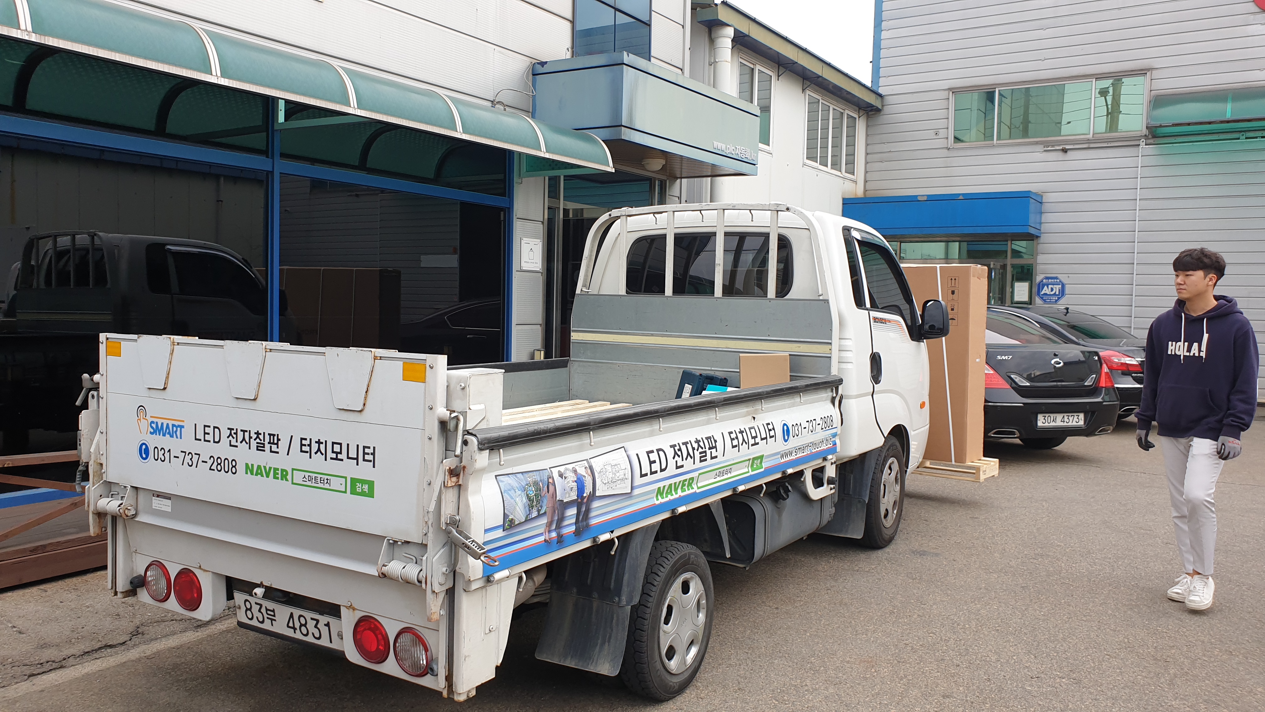 고객사 건물 입구 앞에서 당사 제품이 납품되는 인증샷 하나 건져봅니다 ㅎㅎ