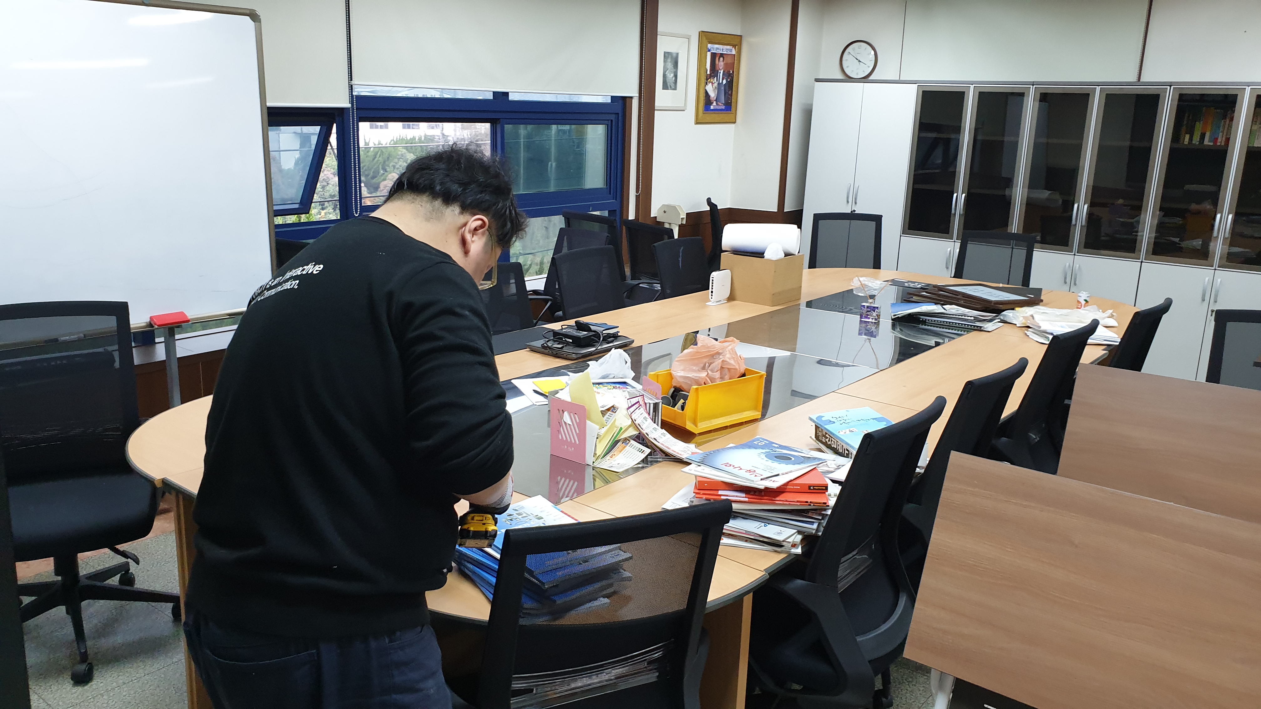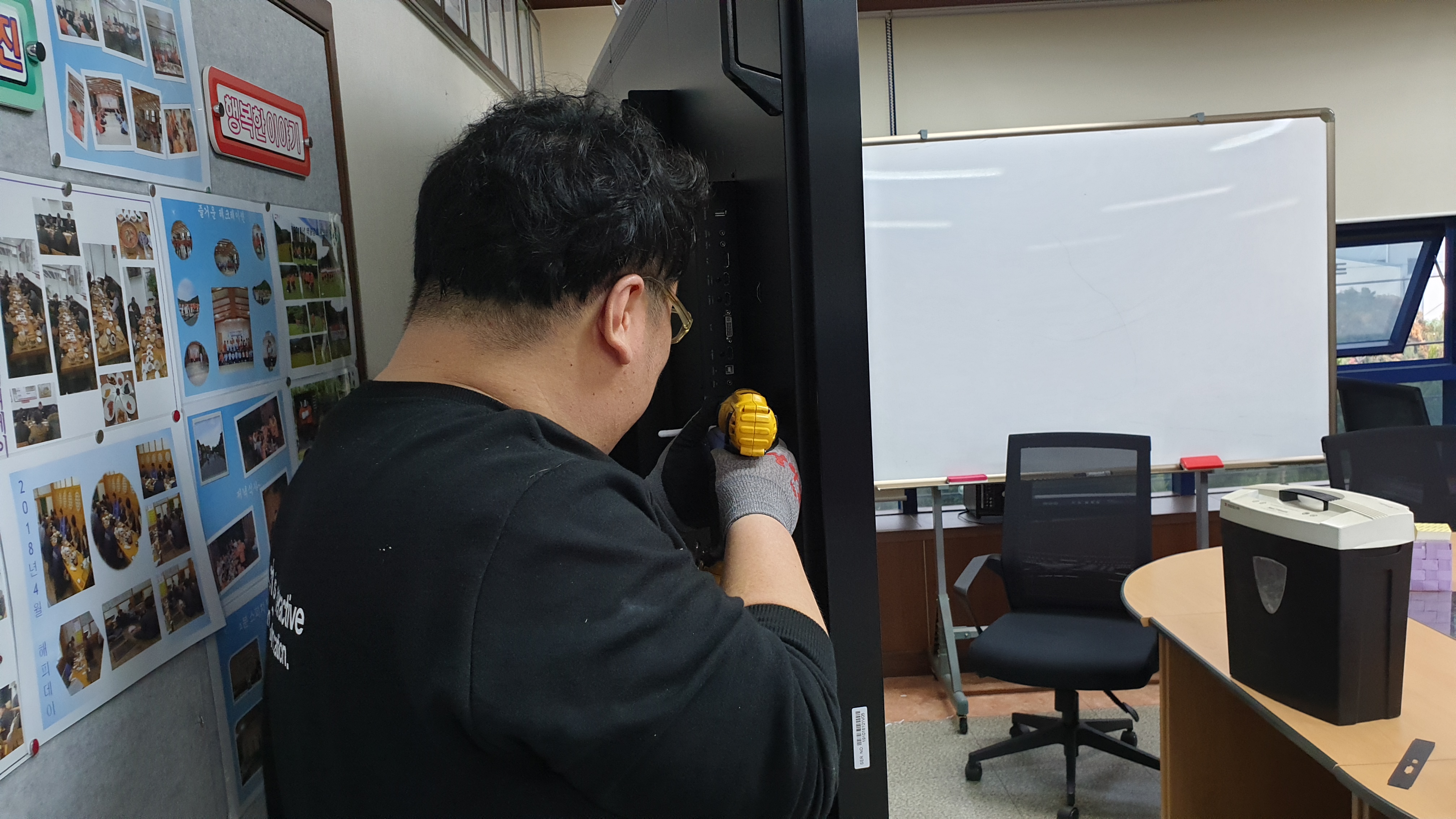 다음은 대회의실에 86인치 설치작업을 진행합니다.