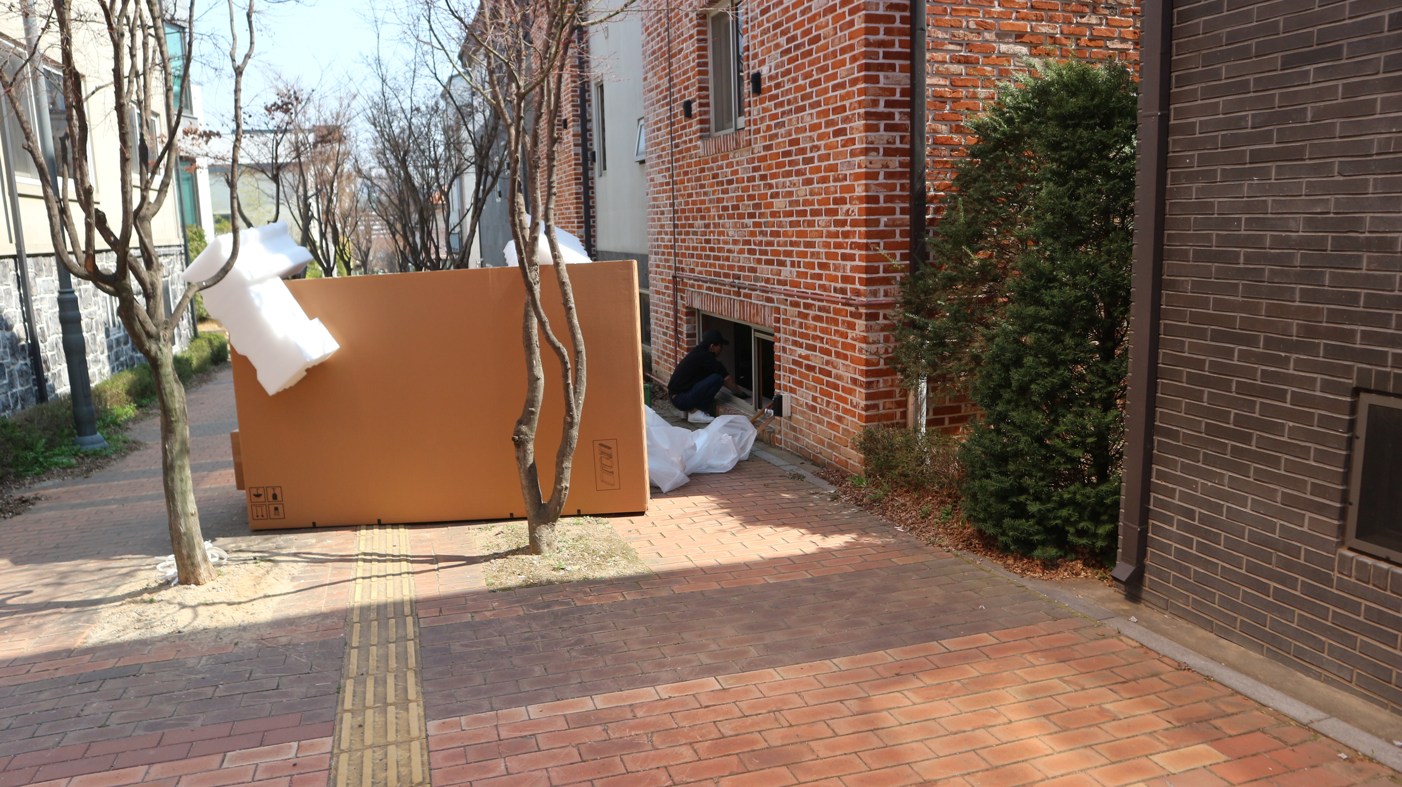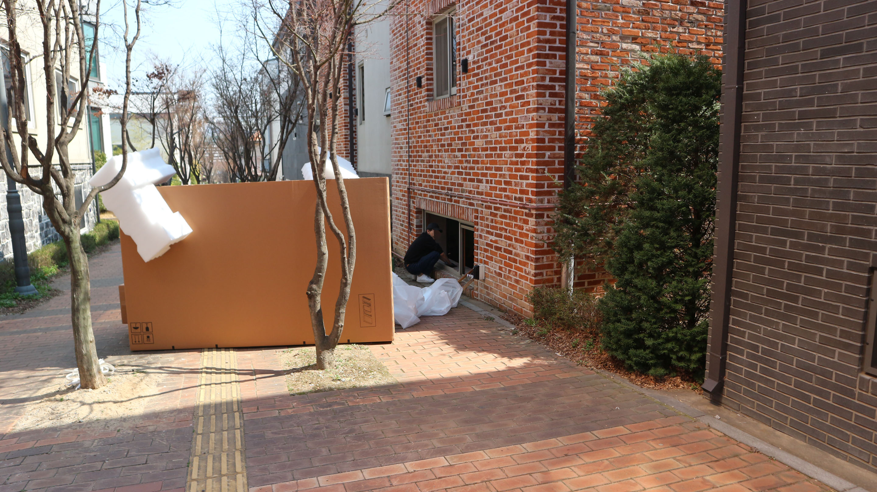 98인치를 안전하게 포장시키는 초대형 박스가 거리에 나와있고