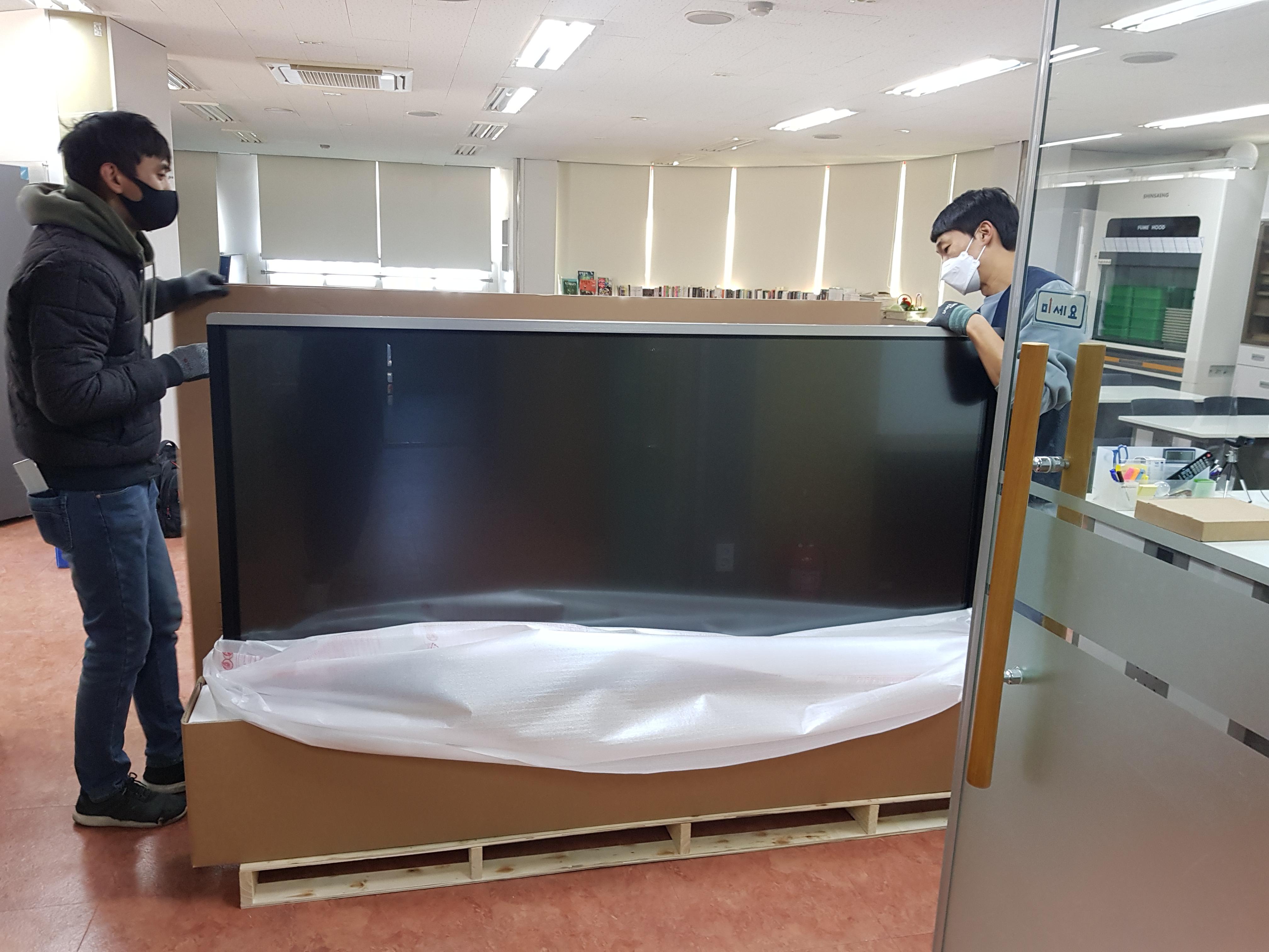 다음은 86인치 전자칠판을 보호하고 있던걸 제거하려고 하는데요