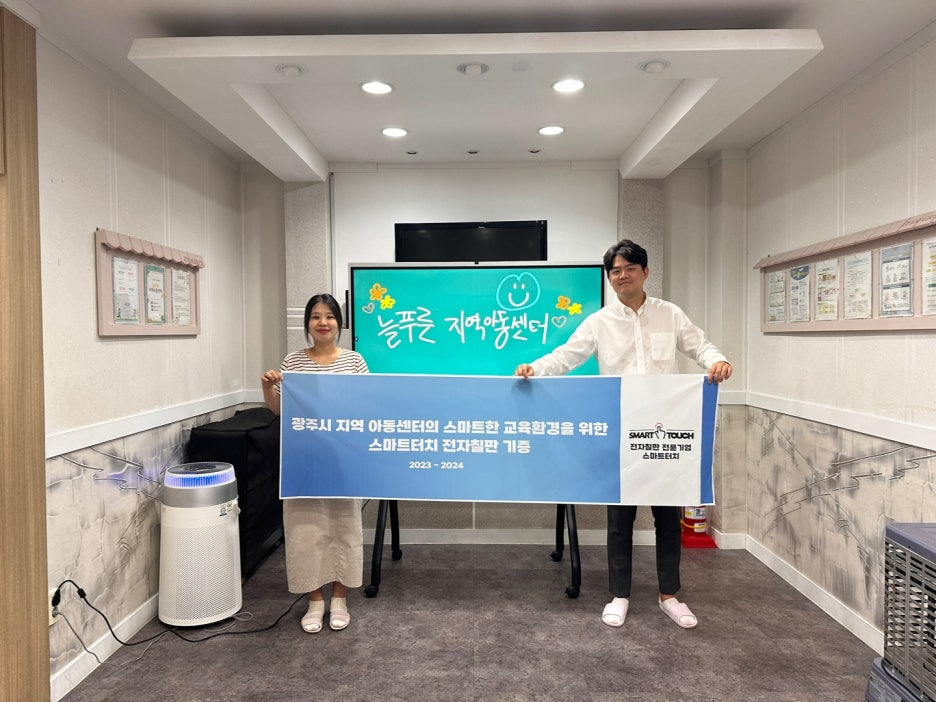 광주시 늘푸른 지역 아동 센터에 거치대형 전자칠판을 기증하였습니다.