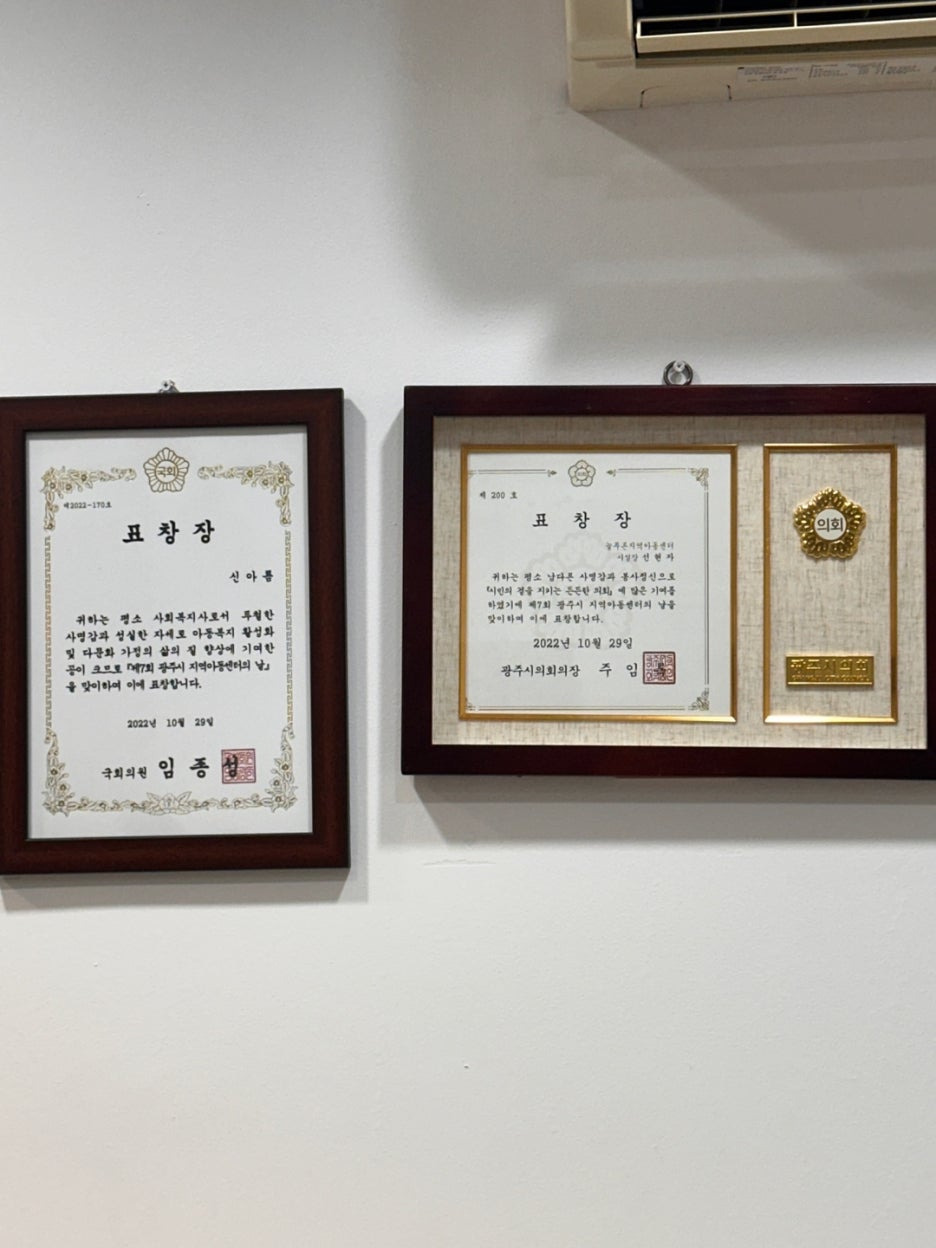 광주시의회의장 · 국회의원 표창장이 걸려있네요.
