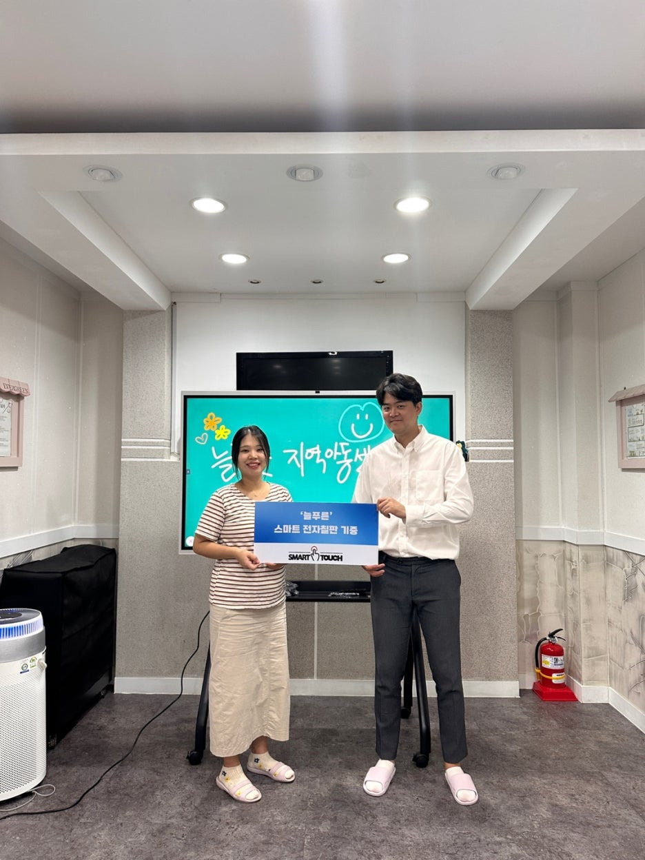 이렇게 스마트터치 전자칠판 기증 릴레이가 이행됐습니다.