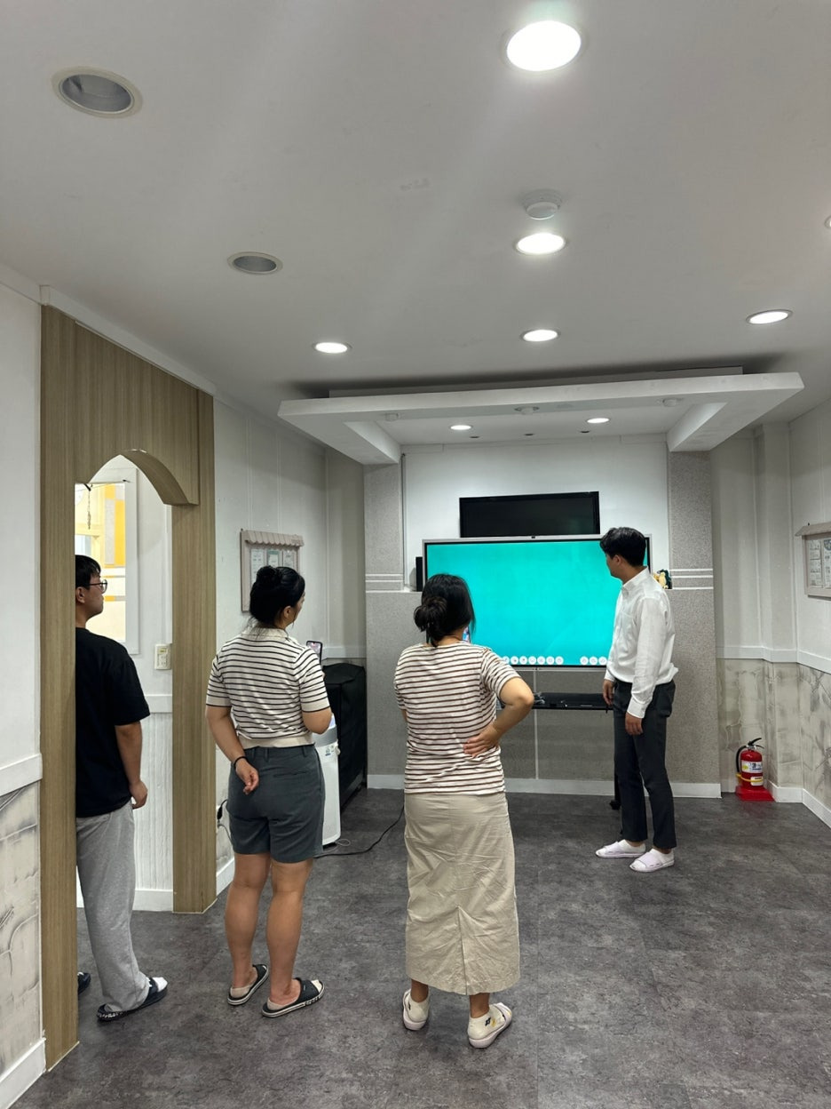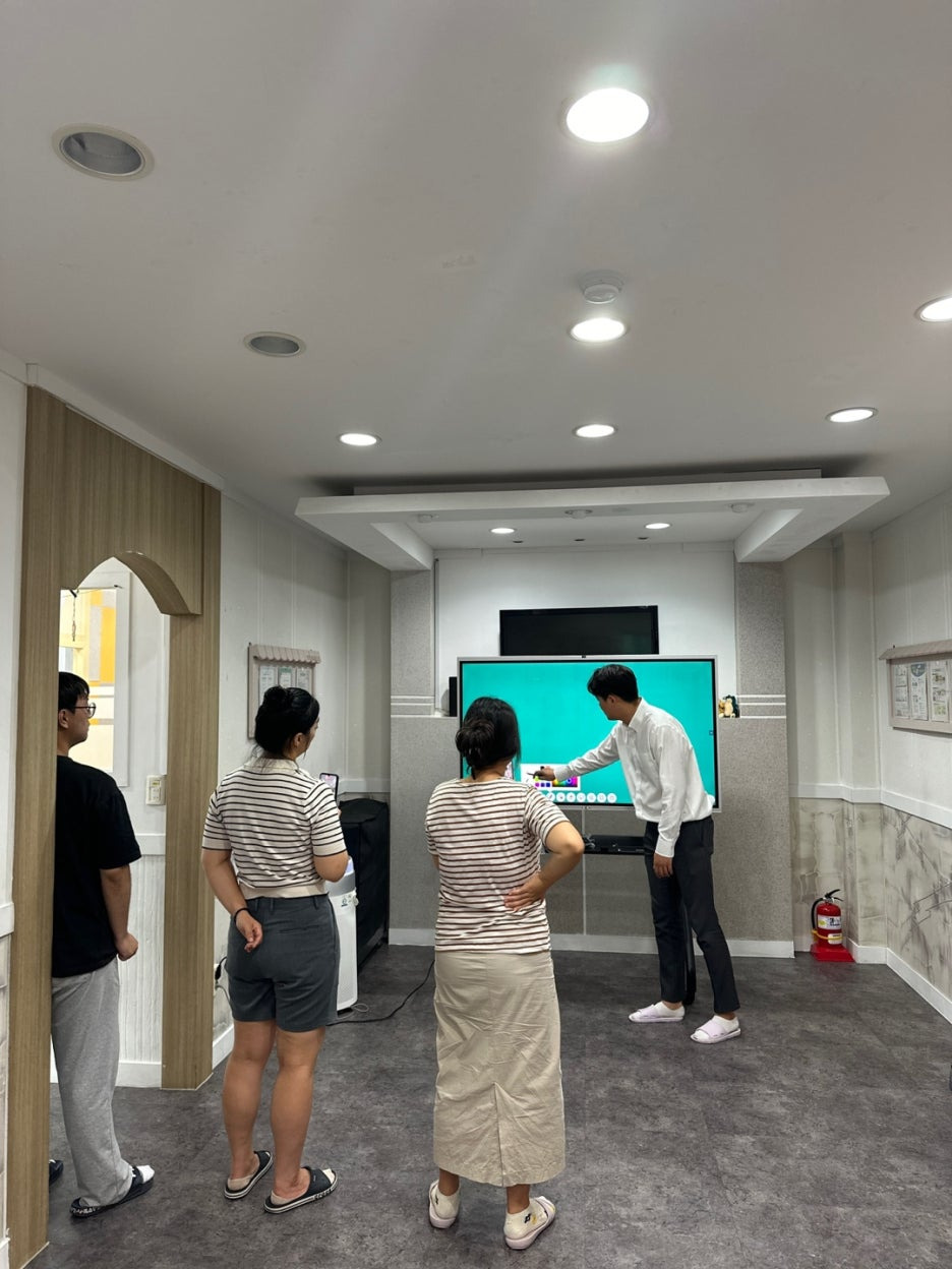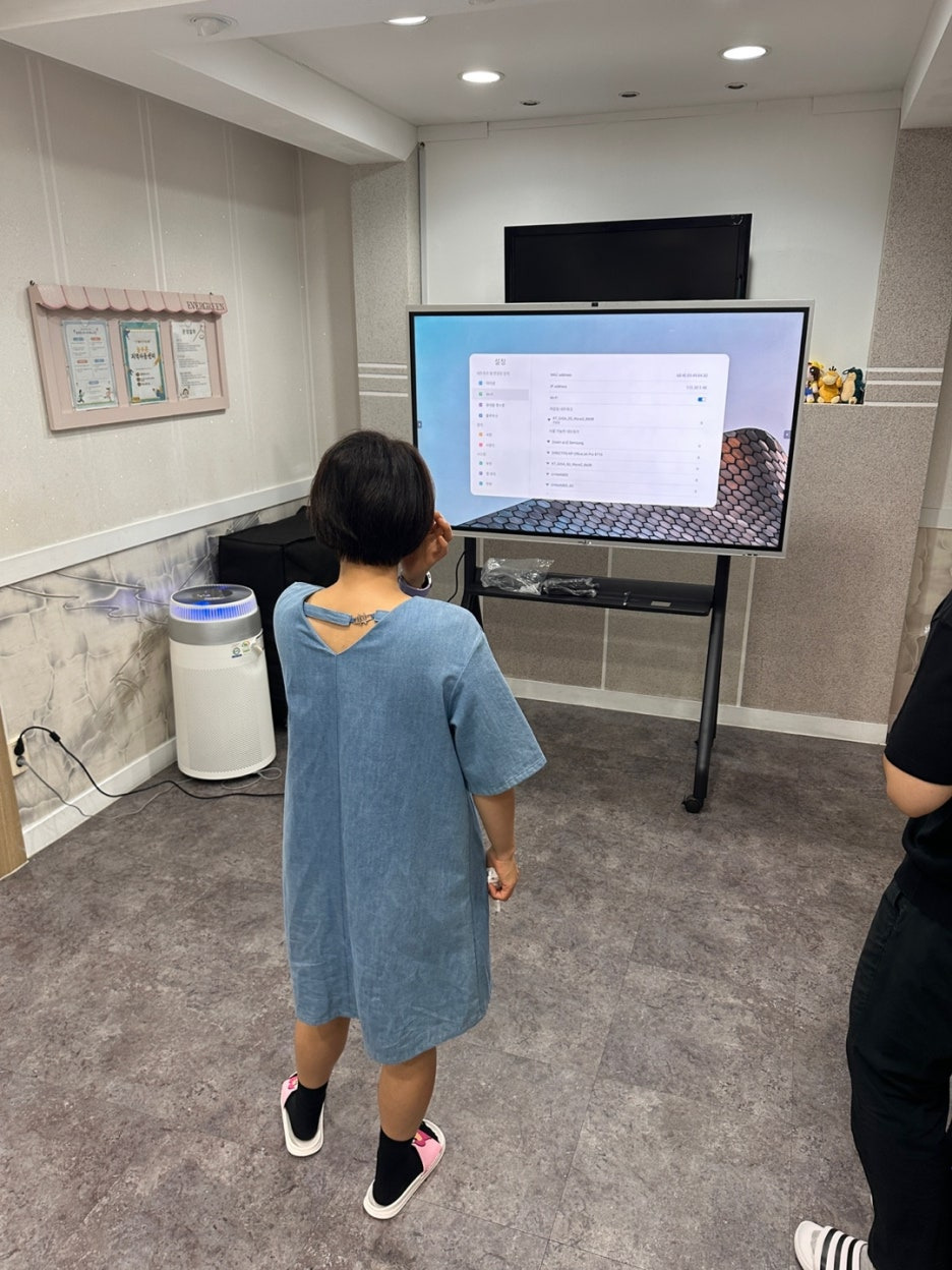 전자칠판 사용에 어려움을 느끼지 않고 편리하게 사용하실 수 있도록 설명을 드리고 있습니다.