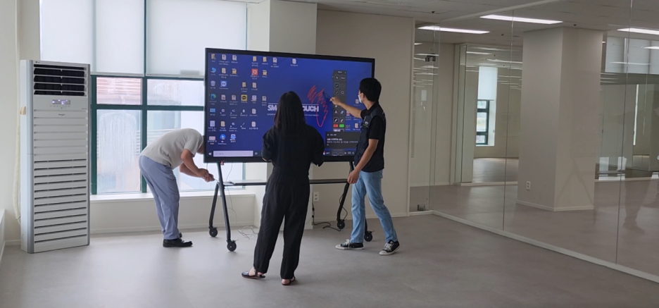 스마트터치 86인치 전자칠판 2대 설치가 진행됩니다.