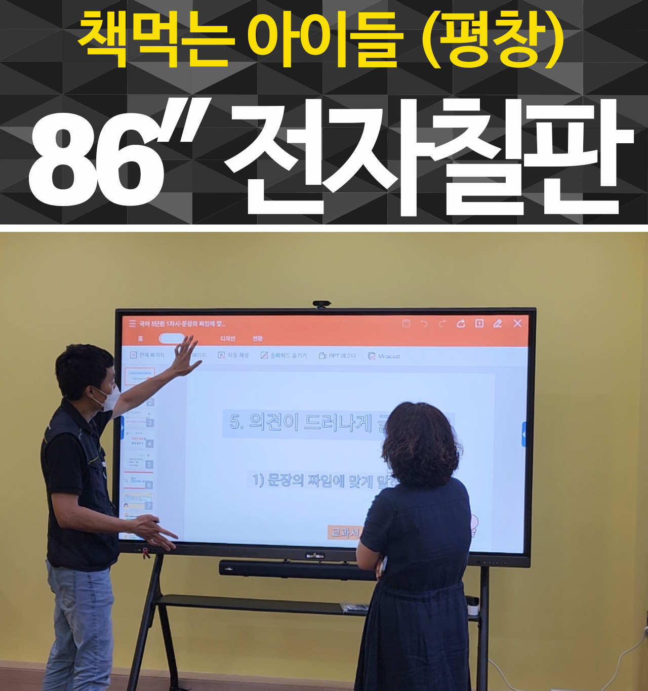 책먹는 아이들에서는 86인치전자칠판 2대를 구매해 주셨습니다.