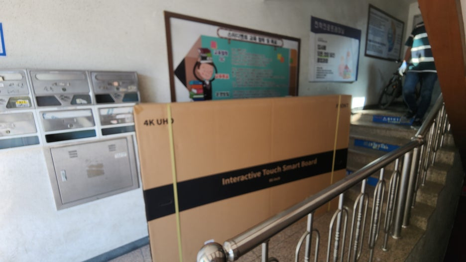 스마트터치 86인치전자칠판을 꼼꼼하게 포장·고정 후