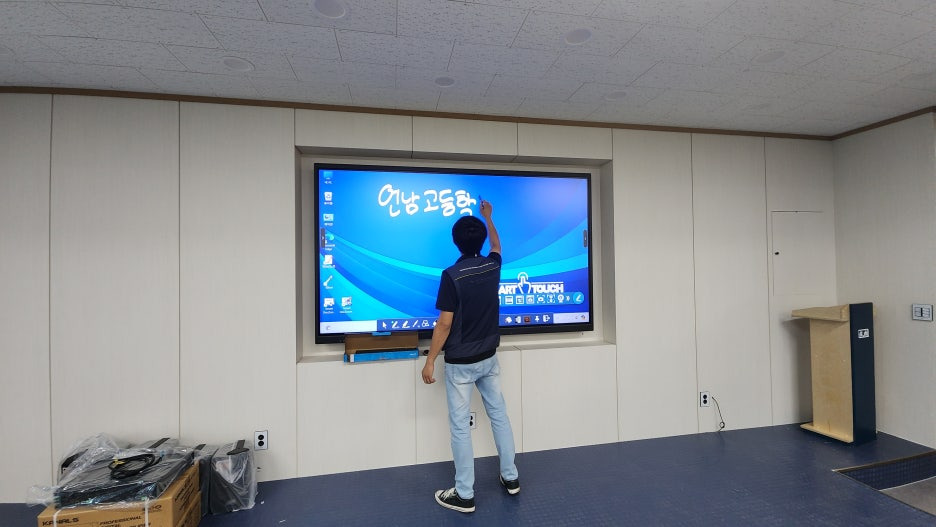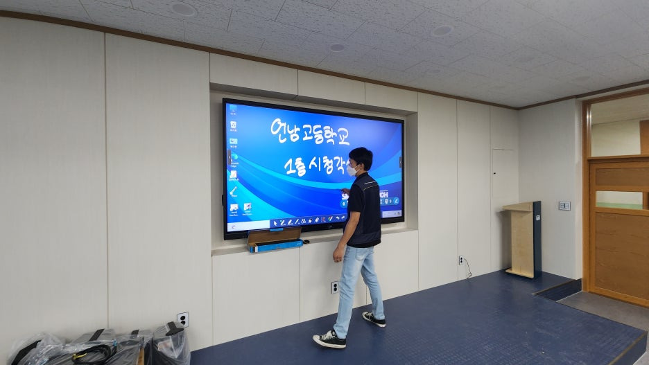 언남고등학교에서는 벽면 부착형 벽걸이 전자칠판 설치가 진행되었습니다.