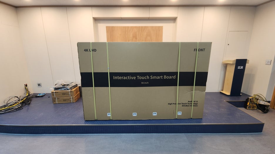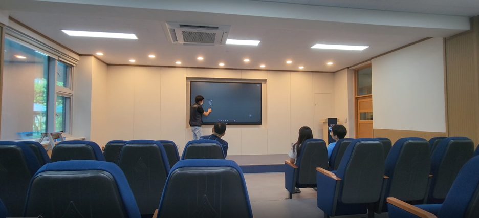 스마트터치 98인치 대형전자칠판이 시청각실에 들어왔습니다.