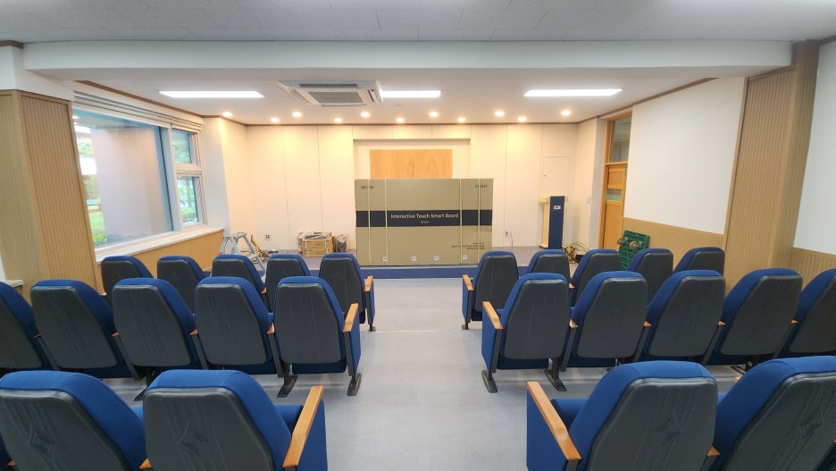 언남고등학교 시청각실은 설치 당시 인테리어 공사가 진행 중이었죠.