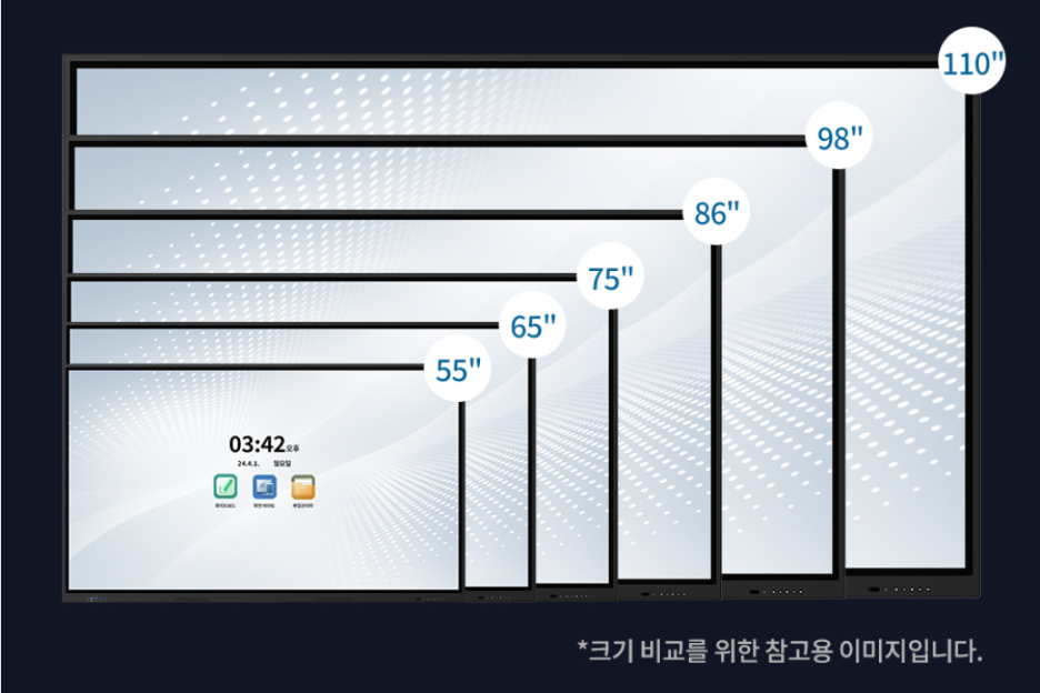스마트터치 전자칠판의 크기 비교를 위해 이미지를 준비했습니다.