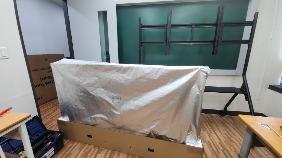신속하고 꼼꼼하게 전자칠판 설치가 진행됩니다.