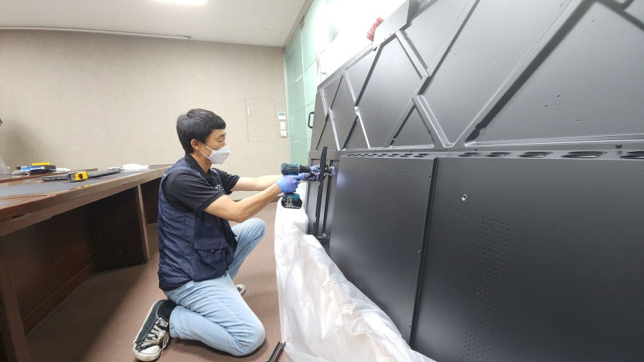 98인치와 110인치 문의 후 공간과 목적에 말맞은 98인치 제품으로 선택해 주셨습니다.